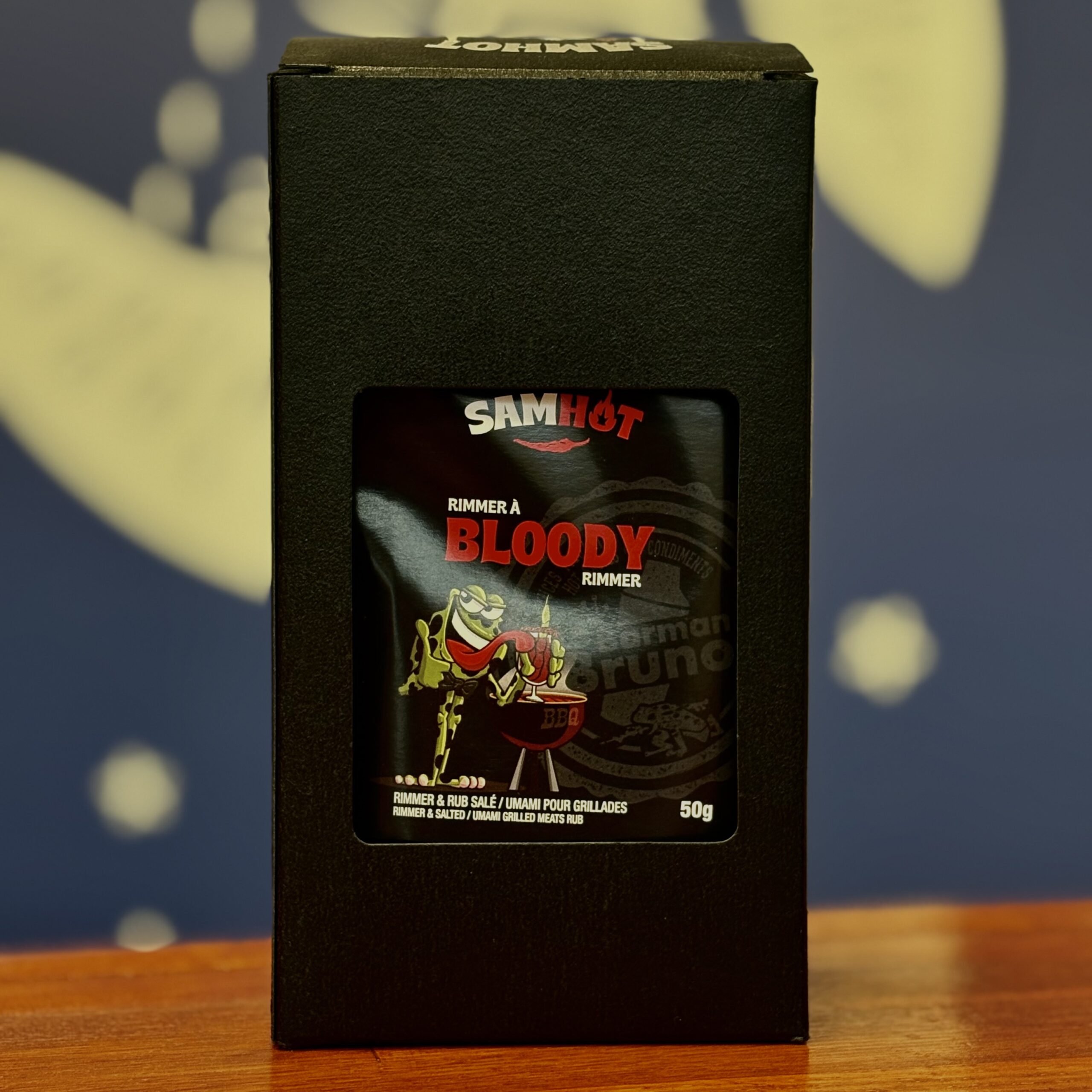 Inclus deux sauces et des épices à mettre autour du verre (rimmer).