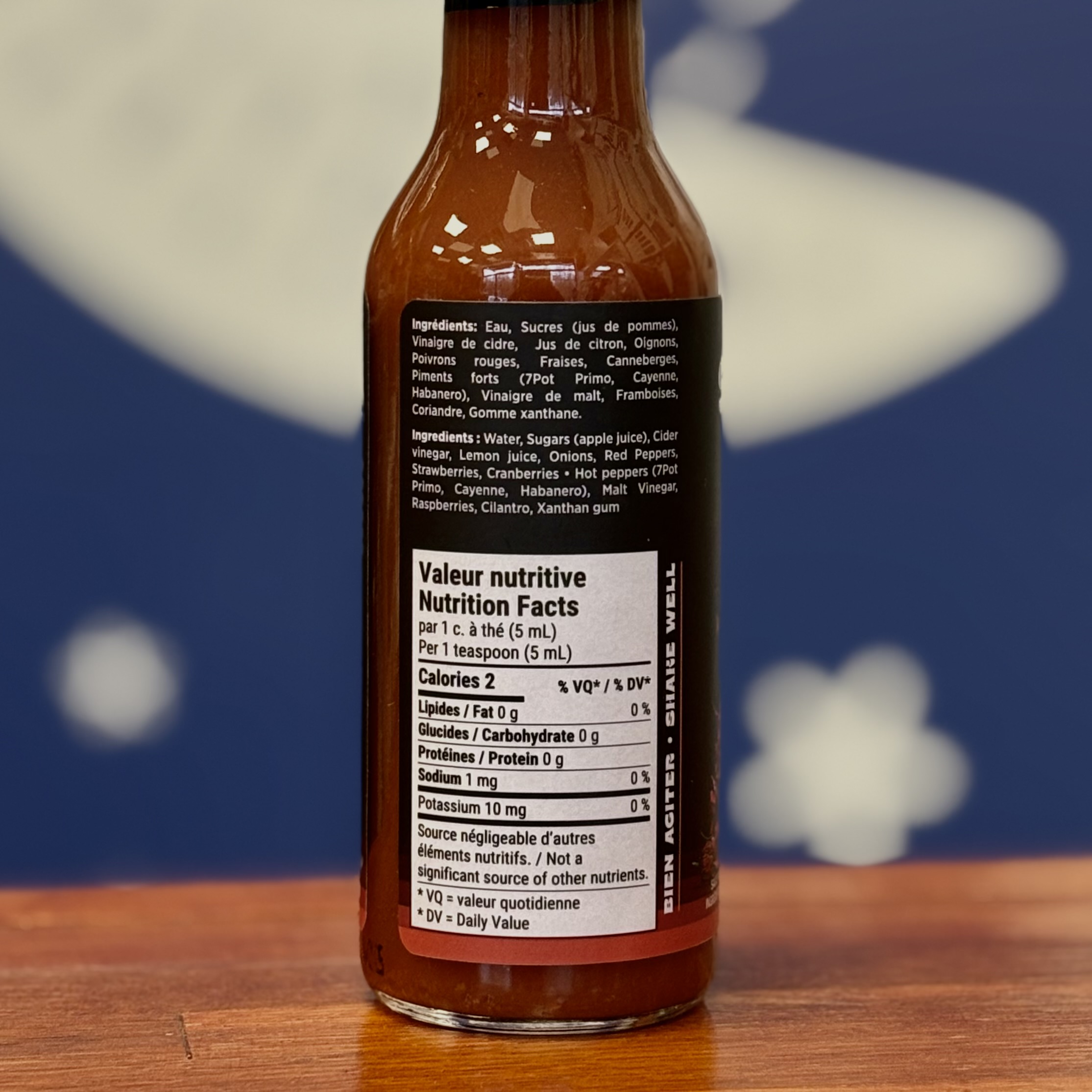 Combiné aux piments Cayenne et Habanero, sa saveur tropicale est rendue plus docile grâce aux fruits des champs qui donnent envie d’en prendre encore et encore!