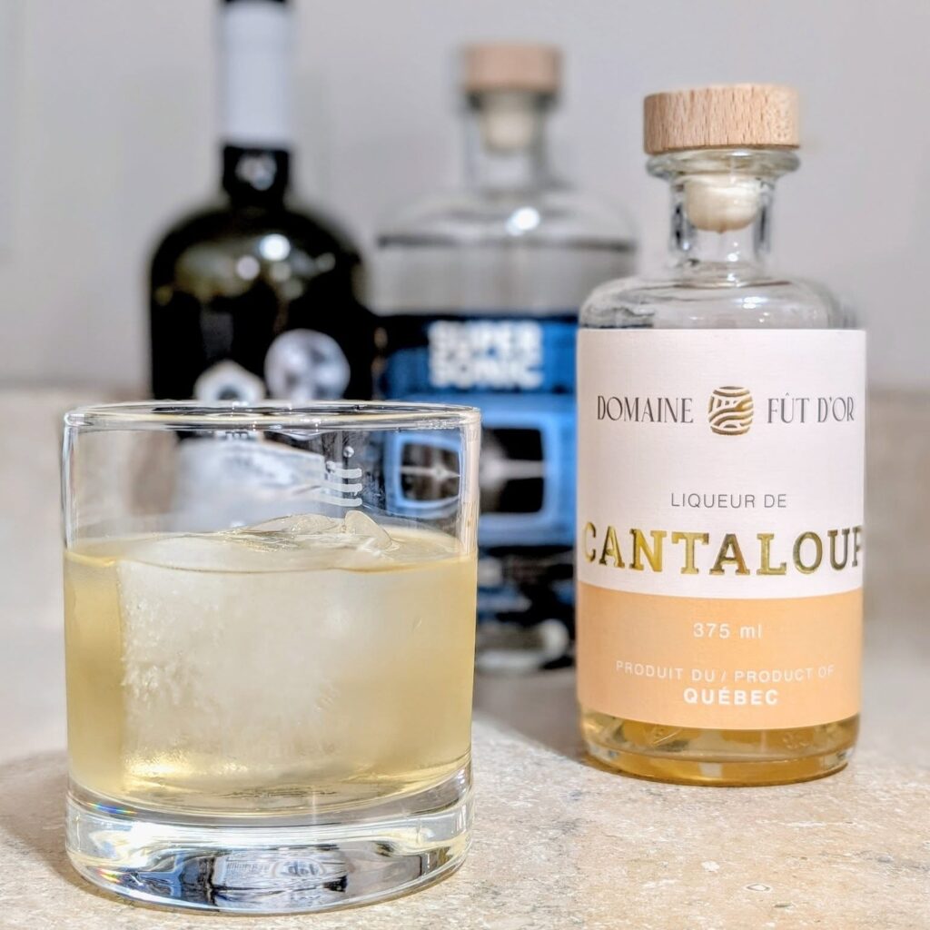 1 oz de liqueur de cantaloup du Domain Fût D’Or 1 oz de gin Supersonic 1 oz de vermouth Val Caudalies Lab Sec